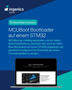 In unserer neuesten Entwicklernotiz zeigt Benjamin, wie der vielseitige MCUBoot Bootloader auf einem STM32 für sichere und zuverlässige Firmwareupdates sorgt.